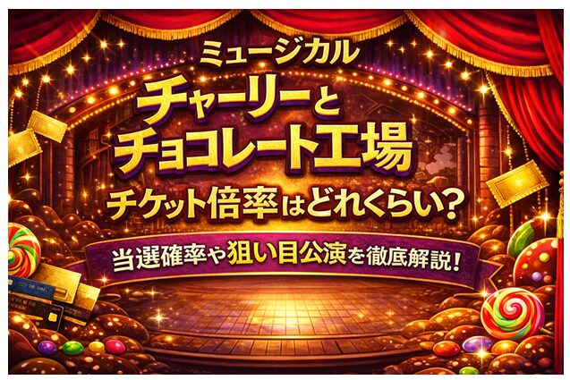 ミュージカル「チャーリーとチョコレート工場」は世界的に有名な作品であり、日本公演でも非常に高い人気を誇ります。 そのためチケットの倍率は高く、 「どれくらいの確率で当たるのか?」 「当たりやすい日程はあるのか?」 と気になっている方も多いで... -