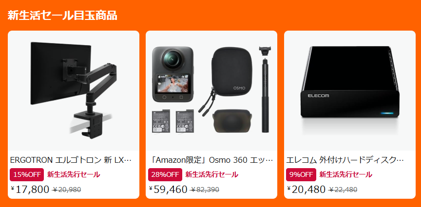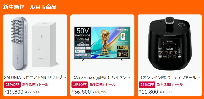 新生活を始めるタイミングで購入する人が多いため、Amazonもこのジャンルを強くセール対象にしています。