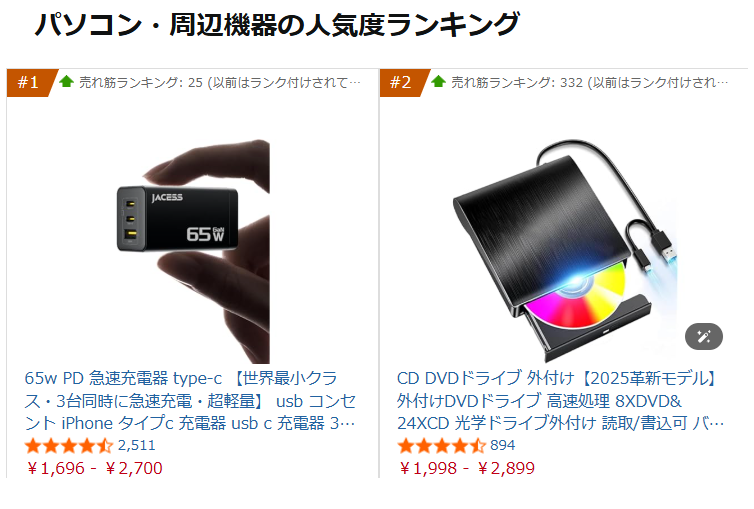 Amazon.co.jp 人気度ランキング: パソコン・周辺機器 の売上ランキングで、過去24時間で最も売上が伸びた商品